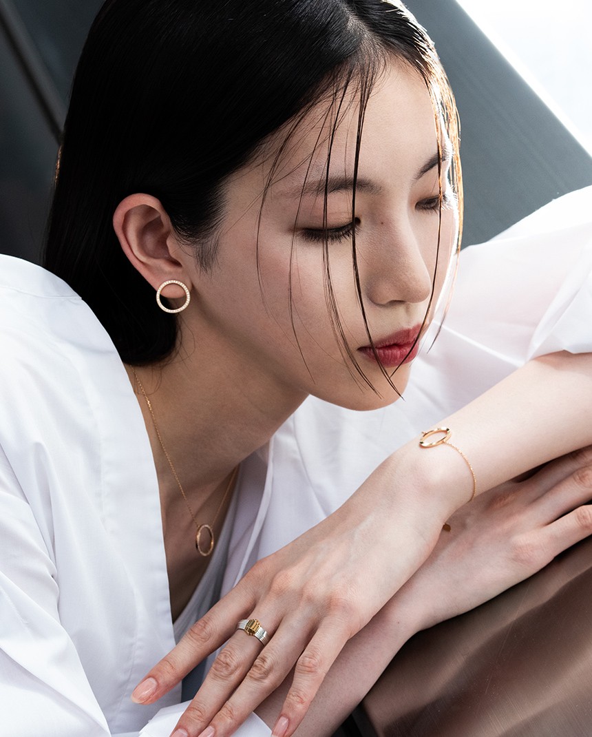 天体の「軌道」を意味する「Orbit(オービット)」シリーズ。星々で構成されたまばゆく輝く天体軌道のように、身に着ける人が美しく輝くことを願って作られています。