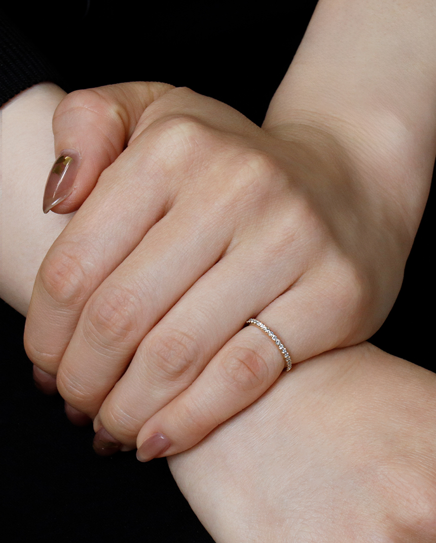 アニバーサリーリングは、左手の薬指につけることで、結婚の証としての認識が一般的ですね。古代ギリシャの時代から、左手薬指の血管は心臓に繋がると信じられており、命に1番近い神聖な指とされていたそうです。