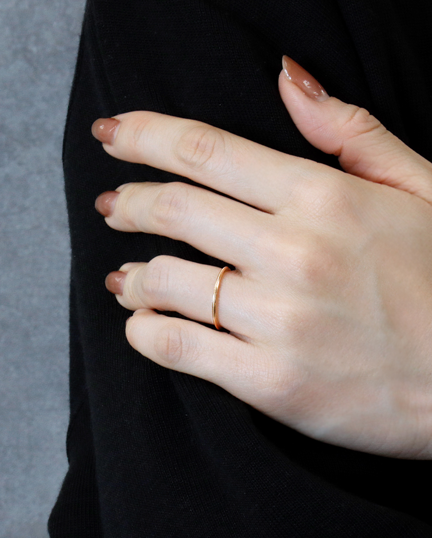 存在感がある指なので、自分自身の印象やファッションに合わせて選ぶのがいいでしょう。華奢な印象にしたいときは繊細でシンプルなデザインを、個性を主張したいときはストーンや模様などの装飾が目立つ、ボリューミーなデザインを選びましょう。重ね付けなどもおすすめです。