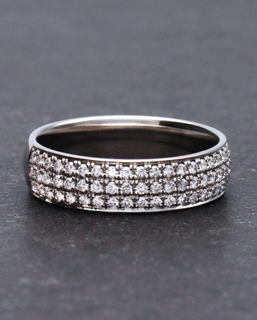 ダイヤモンドがほとんどの面積を占めるため地金面積が少なく、リングの傷も目立たないので常に新品のような高級感があります。