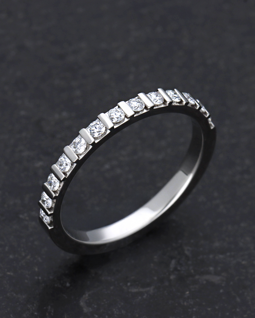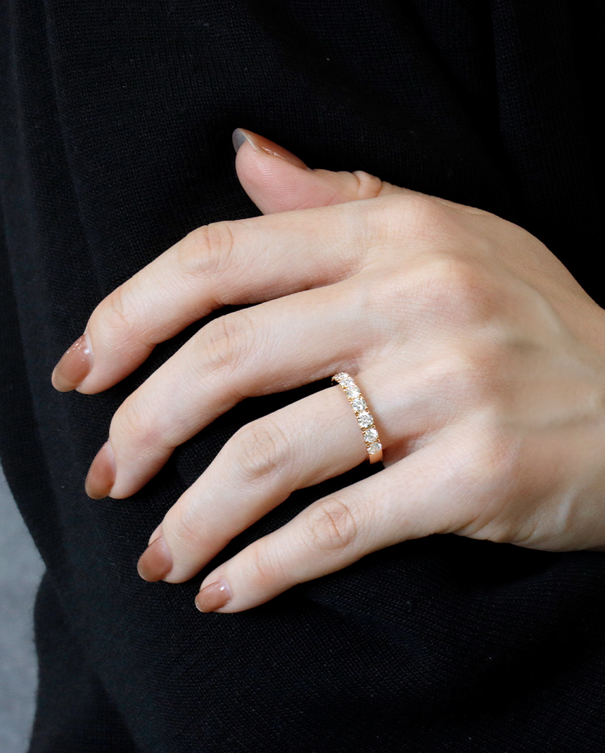 元々エタニティリングとは、フルエタニティタイプのことを指していましたが、昨今の需要の変化により、ハーフエタニティもすっかり一般的になりました。