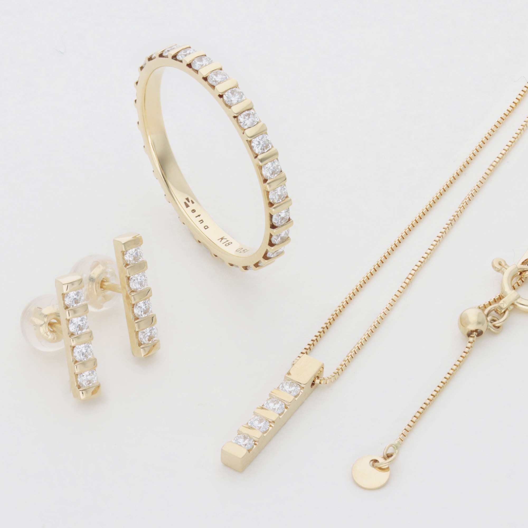 歯車から着想を得た個性的なセッティングが魅力の「ギア」シリーズは、ダイヤモンド本来の形状・輝きを際立たせるために生まれたデザインです。地金は鍛造製法を用いており、ダイヤモンドを爪で留めない「はさみ留め」は、高度な技術を持つ熟練の職人のこだわりがつまっています。