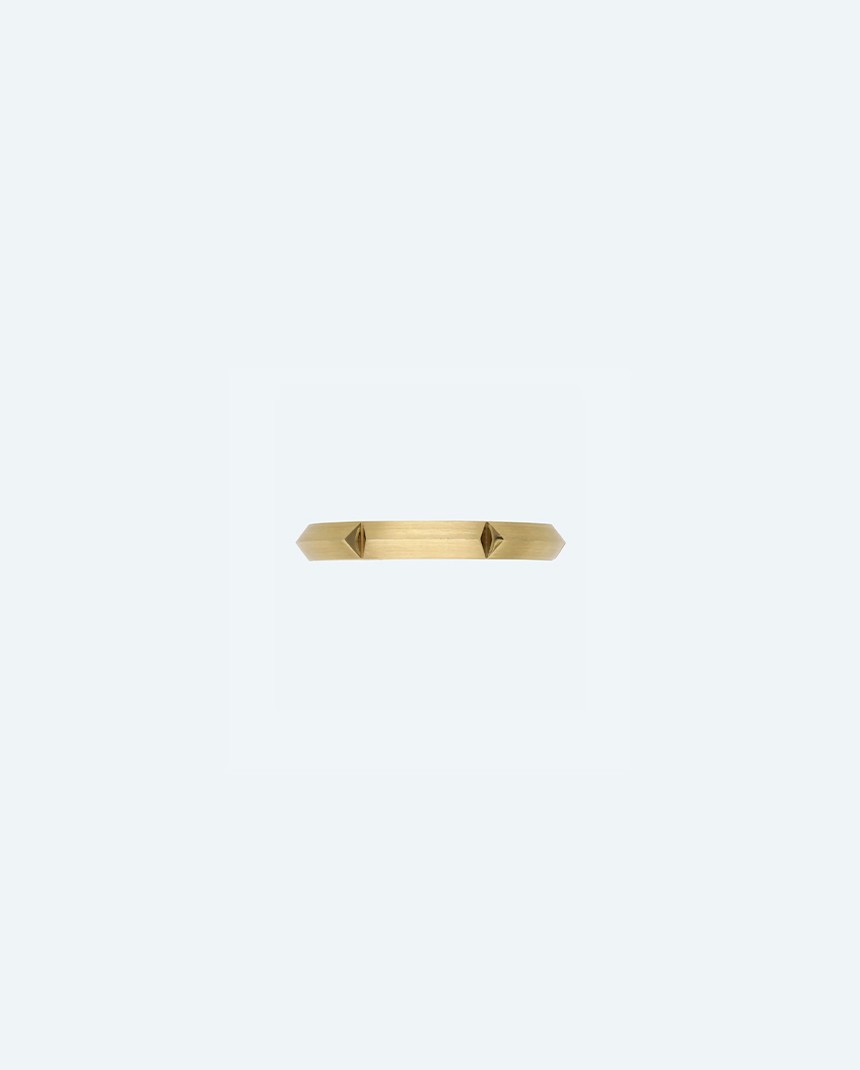 全周に施されたシャープな峰ラインとポイントの、エッジの効いたカット面が刻まれることでより一層輝くデザインに。