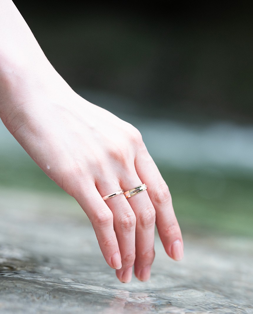 サイドライン部分のテクスチャーはお好みで、半分を鏡面仕上げ、もう半分をマットテクスチャーにすることができます。つける場所によって見た目を変えることが出来る、ファッション性に特化した個性的なアイテムです。